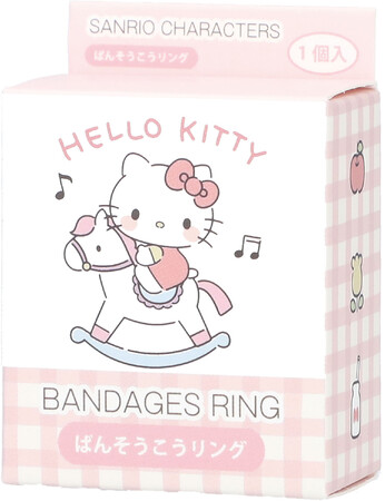 小さい頃に憧れた、お気に入りのキャラクターのばんそうこうをイメージしたリング「サンリオキャラクターズ ばんそうこうリング」に第3弾が登場しました。第3弾ではハローキティとバッドばつ丸のデザインが初登場です。テープの貼り合わせや空気穴、ガーゼ部分の膨らみまでばんそうこうの特徴を再現したリアルな形状と、コロンとした丸みのあるフォルムは、大人になっても思わず身に付けたくなるかわいさです。ばんそうこう箱をモチーフにしたボックスに入れてお届けいたします。