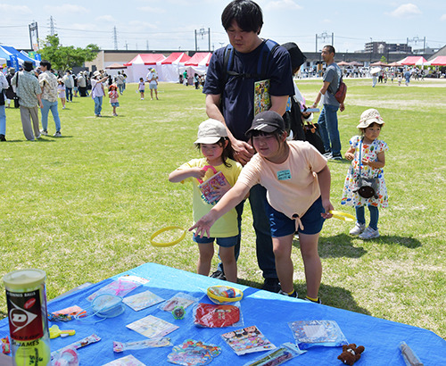 「みどりのカーニバル」は親子連れなど6000人以上が来場し、子どもたちの笑顔や笑い声で会場が大いに賑わう毎年5月に開催されている高槻市の恒例イベント。高槻市こども会連合会や高槻市青少年指導員協議会など、20団体からなる「高槻市こどもの月間実行委員会」が主催し、子どもたちが楽しめるたくさんのプログラムを企画します。お菓子やからあげ、ポテト、たこ焼きなどを販売する模擬店のほか、木工品の小物を作るクラフトコーナーやアートバルーンを作る創作ブース、けん玉指導やコイン落とし、輪投げ、魚釣りなどの遊びブースを出店し、皆さんの来場をお待ちしています。