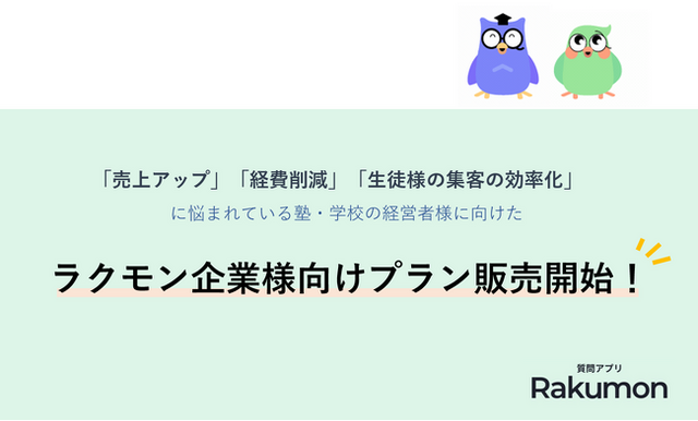 「勉強質問アプリRakumon」は企業様だけでなく、一般の方にもご購入・ご利用いただけます。