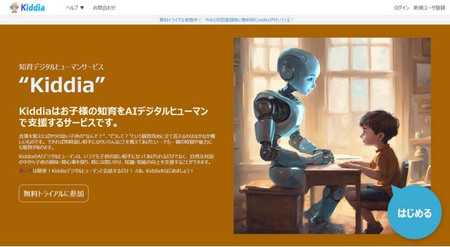 『Kiddia』は、幼児期~児童期のお子様を持つ家庭向けに、いつでもお子様に寄り添う”専属家庭教師”のようなAIデジタルヒューマンを提供するWebサービスです。