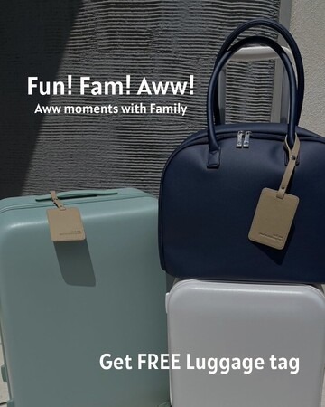 今回のキャンペーンでは、より多くのファミリーにAwwのアイテムを楽しんでいただくため、トラベルアイテムにプラスオンして楽しめる商品を購入特典としてプレゼントします。また、「家族で行きたい旅行先」のコメントでスーツケースが当たるインスタグラムキャンペーンも実施します。