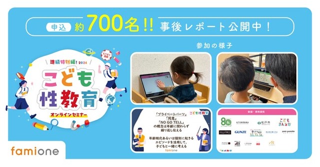 「子どもを願うすべての人によりそい 幸せな人生を歩める社会をつくる」をビジョンに掲げ、LINEを活用した妊活コンシェルジュサービス「famione(ファミワン)」 https://lp.famione.com/ を提供する株式会社ファミワン(本社:東京都渋谷区、代表取締役:石川勇介、以下当社)は、2024年2月18日(日)に「進級前特別編!こども性教育」と題し、小学生およびその保護者、そして教育関係者へ向けた無料オンラインイベントを開催しました。