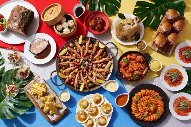 今回は、シェフが世界各国の料理を再現・アレンジしたメニューが登場。彩り豊かな野菜と海老やホタテなどシーフードを香ばしく焼き上げたパエリアや、暑くなる季節にアルコール ドリンクと合わせてお楽しみいただきたいフィッシュ&チップス、スパイスをきかせた鶏肉とヒヨコ豆の煮込み クスクス添えなどがラインナップ。また、ローストポークやベーコンチーズバーガーなどお子様も嬉しいメニューも充実。ご家族やご友人との集まりに、世代を超えて楽しめる料理の数々をご堪能ください。
