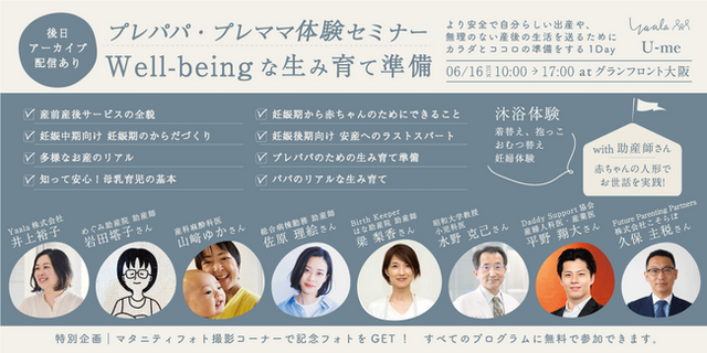 一般社団法人U-meでは、下記のとおり、第3回「Well-beingな生み育て準備」を開催します。多様なニーズを持つ現代の男女が、それぞれの生み育てのwell-beingを叶えるための準備について知り、体験するイベントです。父の日にちなんで、プレパパのための企画も盛りだくさんにご用意しています。