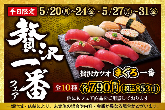 今回の贅沢ネタ!今が《旬》の「カツオ」をはじめ、豊富な商品ラインナップの『贅沢一番フェア』!!この機会に是非、小僧寿しのお寿司をご賞味ください!
