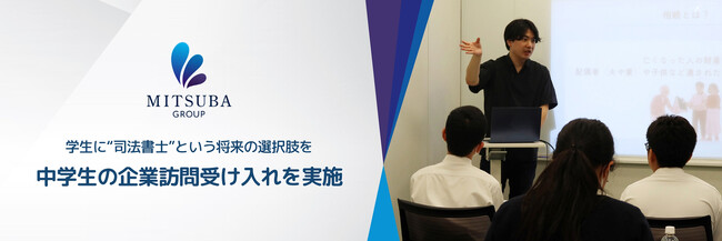 全国7拠点で登記・相続・債務整理などのサービスを提供する司法書士法人みつ葉グループ(本社:東京都港区、代表:宮城誠、以下当グループ)は、2024年5月に中学生の企業訪問受け入れを実施しました。また、当グループでは、社会貢献活動の一環として、全国の中高大生を対象とした「企業訪問」「出張授業」を積極的に受け付けております。