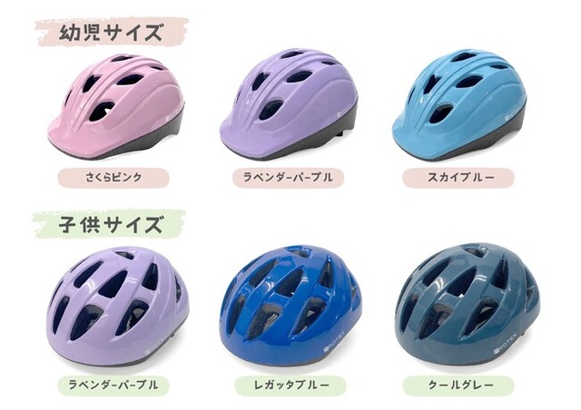幼児用(目安:3-8歳)と子供用(目安:6-10歳)の2サイズ展開です。大きめのベンチレーター(通風孔)を設けることで、汗をかく時期も蒸れにくく快適に被ることができます。
