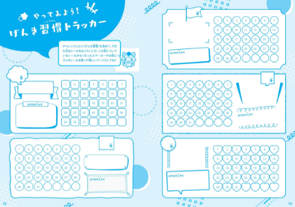 毎日ウキウキ続けたくなるデザインの紙面に、付録のシールをペタリ。子どもがストレスなく「げんき習慣」に取り組んでいけます。