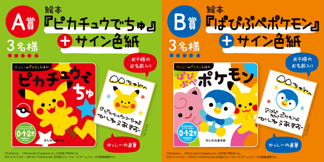 お子様のお名前入りのかしわら先生サイン色紙と、絵本どちらか1冊をセットにして、抽選で合計6名様にプレゼントします。