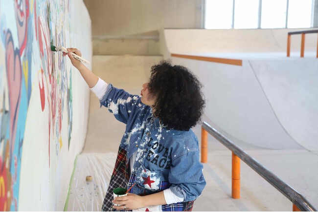 このプロジェクトは、JSF公認(※1)JWSCスケートボーディングラボの壁に大規模なアート作品を制作するもので、学生とプロのアーティストが共同で取り組みます。デザインコンセプトは「伝統の継承と進化」で、学校の25年の歩みとボードスポーツとアートの融合を学ぶ特別授業の一環としても行われます。