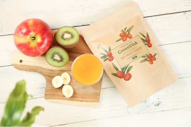 今回このサジーを直輸入し、約1年程かけて商品開発を進め、ようやく来週5月29日にGreenDishシリーズより、「サジージュースパウダー」としてリリースされます。