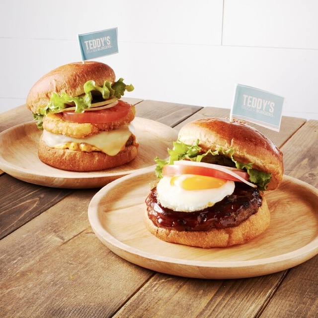 目玉焼きと2日間かけて仕込んだてりやきソースが自慢のバーガーと、ハッシュドポテトとチーズを豪快に挟んだ2種類はこのイベントのために開発された限定品。※ジェイアール名古屋タカシマヤ限定 ※イートイン