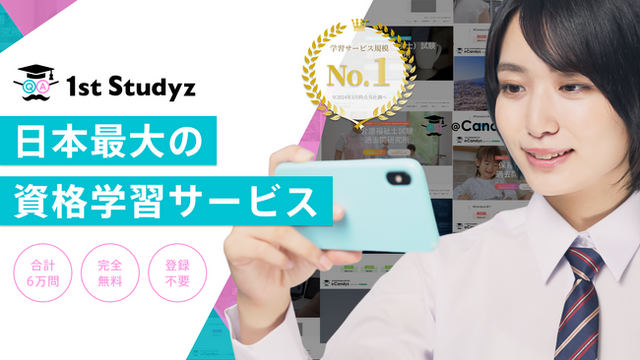 「過去問 1st Studyz」は時間や場所を問わず、パソコンやスマートフォンから気軽に資格学習できる無料のサービスです。2023年1月のリリース以降、サービスを拡充させ、現在15資格6万問超を掲載。学習サービス規模としては国内最大(※1)の学習プラットフォームへと成長しました。