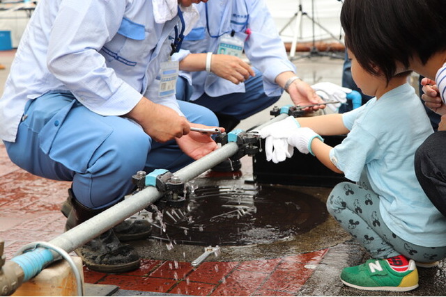 ・水道管の漏水修理デモンストレーション、漏水修理体験コーナー