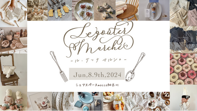 この楽しさや、ときめき、ワクワク感を「おやつの時間」という言葉で表現し、日々頑張っているママたちが癒されたり、ママ同士が好きを共有しあえる空間ができたらと思い、すてきな商品を展開しているショップさんと共に「Le gouter marche」 (ル・グッテ マルシェ)というマルシェを開催することにしました。 Le gouter (ル・グッテ)はフランス語で「おやつタイム(アフタヌーンティー)」という意味です。