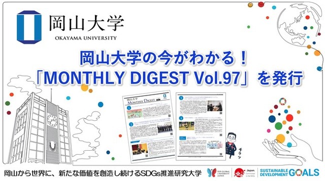 国立大学法人岡山大学(本部:岡山市北区、学長:那須保友)では、毎月、本学のニュースの中から注目度の高い記事をご紹介する「MONTHLY DIGEST」を発行しています。