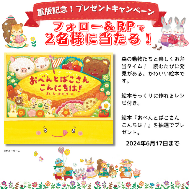 抽選で2名様に絵本『おべんとばこさん こんにちは!』をプレゼントいたします。