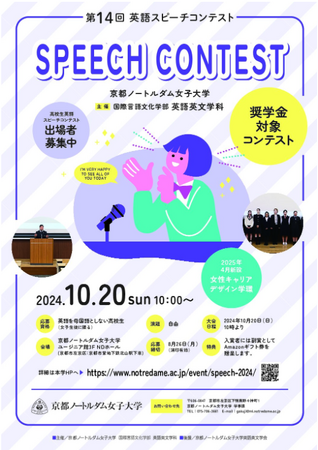 京都ノートルダム女子大学(学長:中村久美、所在地:京都府京都市左京区)は、高校生対象「第14回英語スピーチコンテスト」を開催します。