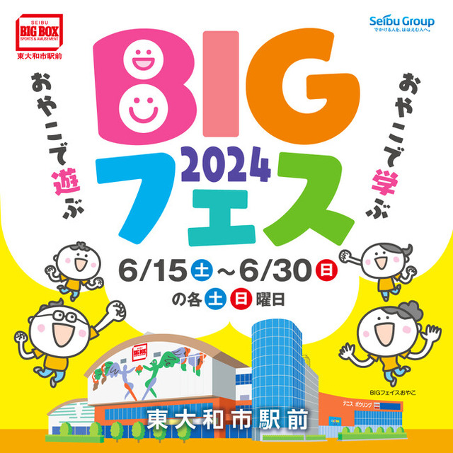 スポーツとアミューズメントの複合型施設 「BIGBOX東大和」(東京都東大和市)は、「おやこで遊ぶ・学ぶ」をテーマに“家族の絆”と“地域社会の交流”の場を目的としたイベント『BIGフェス』を、6月15日(土)~6月30日(日)の各土・日曜日の合計6日間開催いたします。開催期間中、屋内型キッズランド「あそびっぐ」では、フランス絵本でおなじみの「うっかりペネロペ」の読み聞かせミニステージ、「すきすき!スイ~チュ(ハート)」による絵本の読み聞かせキャラクターステージ、歌とお絵描き「ウミノホナミ」さんのパフォーマンスショーなど、おやこで一緒にお楽しみいただけるイベントを開催します。またワークショップとして、東大和市内で事業を展開する「Lu Laforte(ル ラフォート)」のパラパラ漫画制作や、「HEXION(ヘクション)」のレザー小物作り、当施設内にあるBURGCAMP(バーグキャンプ)のハンバーガー作りなど、体験しながら学べる企画もご用意しております。その他、「消防車・パトカーの展示・撮影会」「西武鉄道おやこ制服撮影会」「キッズバイク試乗会」など、“遊ぶ・学ぶ”が盛りだくさんのイベントです。