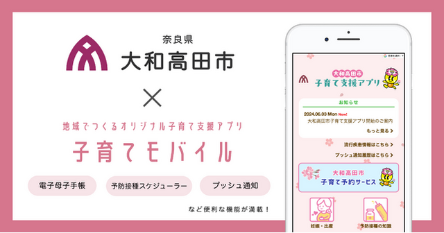 自治体向けサービスを開発する株式会社ミラボ(本社:東京都千代田区、代表取締役:谷川一也、以下「ミラボ」)の子育て支援アプリ「子育てモバイル」が、奈良県 大和高田市に導入され、「大和高田市子育て支援アプリ」として6月3日より提供を開始しました。