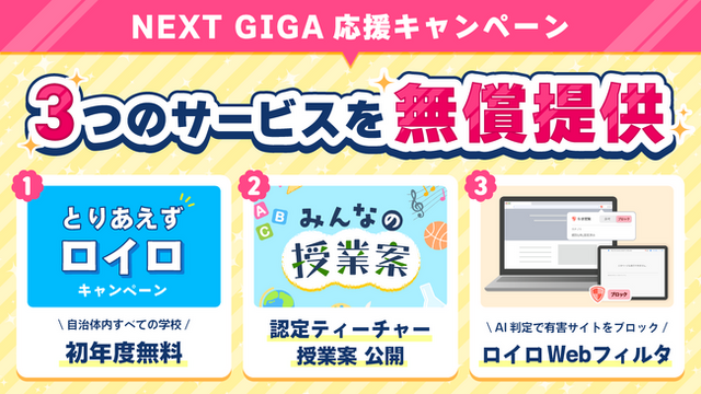 株式会社LoiLoは、GIGAスクール構想 第2期の端末更新に向け、「NEXT GIGA応援キャンペーン」を実施します。自治体の端末活用・授業改善を促進させる3つのサービスを無償提供します。