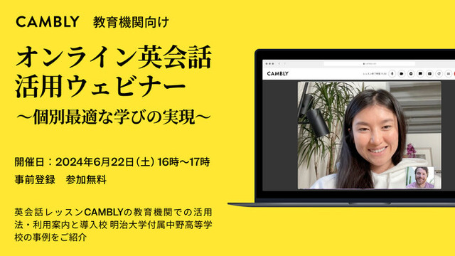 Cambly Inc.(本社:アメリカ・サンフランシスコ、日本代表:佐藤 亜希子)は、明治大学附属中野高等学校さまの導入事例を参考に、CAMBLYを学校で導入・活用する方法を紹介するウェビナーを6月22日(土)に開催いたします。教育機関の方対象、参加無料です。
