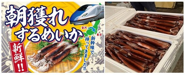 第2弾では、プライドフィッシュ認定※1)の石川県産するめいかを販売します。朝獲れたてのするめいかを新幹線で配送することで、色が真っ黒いままの光沢のある鮮度の良い状態でご提供します。