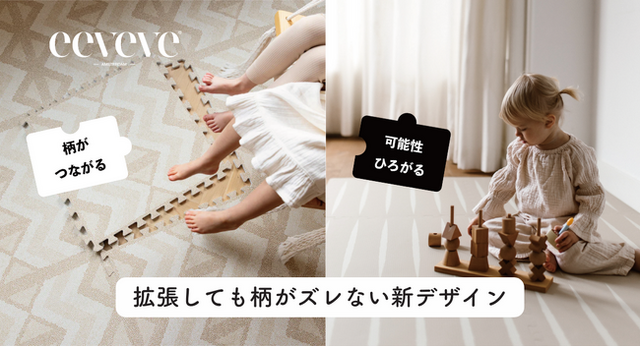 weskiii(ウェスキー)株式会社(本社:東京都港区 https://weskiii.com/ )が運営する、オランダ生まれのシリコン食器やどんなインテリアにも合うフロアマットを展開するブランド「eeveve(イービーブ)」から、新デザインのフロアマット(フォームプレイマット)を発売いたします。新デザインは拡張しても柄がズレないマットなので、お部屋のサイズやインテリアに合わせ、お好みのサイズにレイアウトしていただけます。