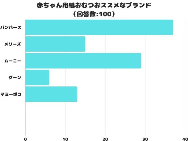 赤ちゃん用おむつおススメなブランドをアンケートにて調査したところ、1位は「パンパース」でした。