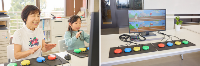“一般社団法人UDe-スポーツ協会”が、年齢や障がいの有無などにかかわらず、⾚・⻩・⻘・緑の4 つのボタンで誰もが簡単に参加し、楽しむことができるe スポーツサービスとして開発をした商品です。