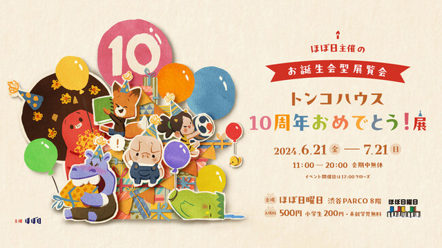 2024年7月14日、アニメーションスタジオ「トンコハウス」は設立から10周年をむかえます! そこで、コンテンツやイベントでお世話になってきた「ほぼ日」からトンコハウスへ「おめでとう!」の気持ちを届ける「お誕生会型展覧会」を渋谷PARCO8Fの「ほぼ日曜日」で開催します。