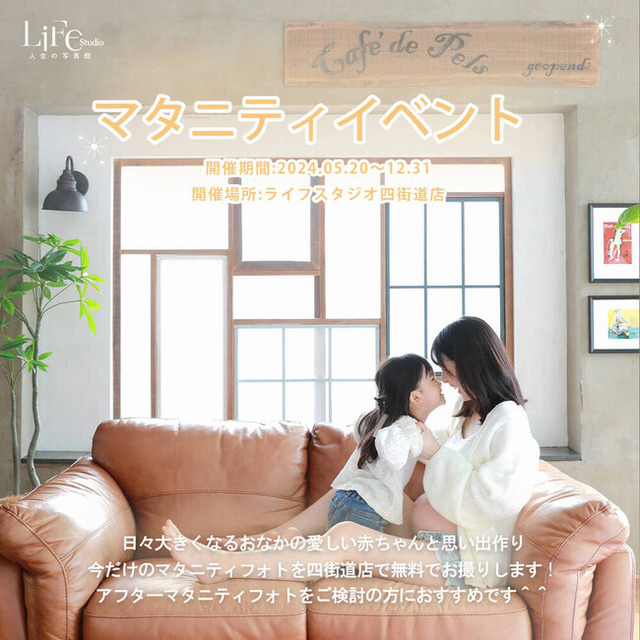 せっかくの貴重な妊娠という体験の思い出をぜひ形に残して頂き、妊娠中の姿を撮影しておけばよかったと後悔することのないように、無料撮影になるため、是非今回のイベントを機に撮影に参加してみてください。