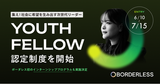 株式会社ボーダレス・ジャパン(本社:福岡県福岡市、代表取締役社長:田口 一成、以下ボーダレス)は、社会課題を希望に変える次世代リーダーを認定する「YOUTH FELLOW」制度を開始することをお知らせします。YOUTH FELLOWに認定されると、社会起業家の伴走支援やキャリアサポートを受けることができます。あわせて、その認定フローで必要となるボーダレス初の超実践型インターンシッププログラム「RISE」のエントリーの受付も開始します。「RISE」は、約3カ月間自らが立ち上げたプロジェクトを事業に落とし込み、資金調達、そして社会実装まで実行するプログラムです。YOUTH FELLOW 特設ページ