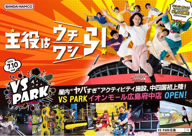 株式会社バンダイナムコアミューズメントは、2024年7月10日(水)にグランドオープンする屋内“ヤバすぎ”アクティビティ施設「VS PARKイオンモール広島府中店」にて、オープン記念7大キャンペーンを実施します。