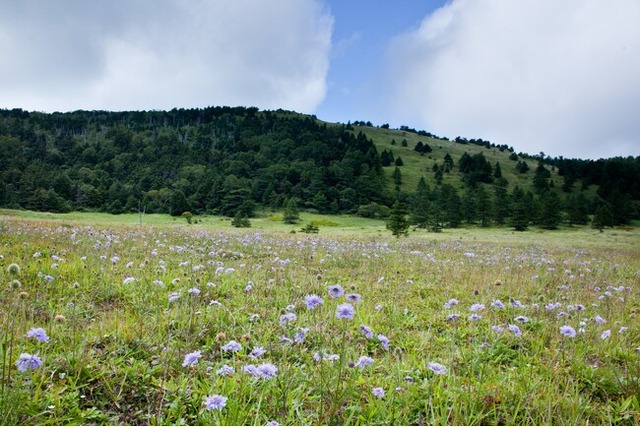 池の平湿原は、休暇村から車で約30分、高峰高原と湯の丸高原の中間に位置しています。数万年前の火山の火口原に広がる高層湿原で、温暖な里山から一気に標高2000m超の湿原へと急峻な地形になっており、昼夜、そして年間の気温差が大きい特徴的な気候条件にあります。そのため、里山に生息する動植物から、本来ならば3000m級の山岳地帯に見られるような高山性の動植物までがこの狭い一帯に混在し、生息しています。このような特有な環境であることから池の平湿原は“高山植物の宝庫”や“天空のお花畑”と呼ばれています。