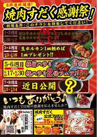 【焼肉すだく感謝祭】8週連続開催決定!!