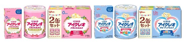 画像:乳児用粉ミルク「アイクレオ バランスミルク」シリーズ、幼児用粉ミルク「アイクレオ グローアップミルク」シリーズの主なリニューアル商品