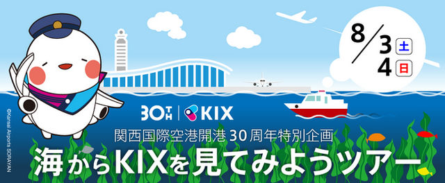 関西エアポート株式会社と大阪府漁業協同組合連合会は、2024年8月3日(土)と4(日)に関西国際空港にて、「関西国際空港開港30周年特別企画 『海からKIXを見てみようツアー』」を開催することをお知らせいたします。