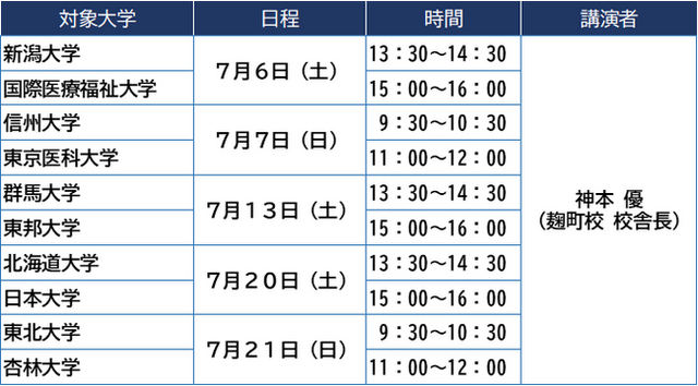 ■河合塾麹町校 医学部医学科セミナー概要