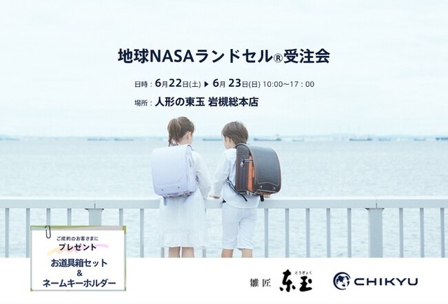 ランドセルの企画・販売を行うCHIKYU株式会社(旧池田地球株式会社、東京都港区、代表取締役:村尾光一)は、埼玉県の「人形の東玉 岩槻総本店」にて「地球NASAランドセル(R)受注会」を開催いたします。