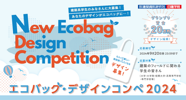 本コンペでは、建築学生がもらって嬉しい&普段使いしたくなるようなデザインでありながら、日建学院のイメージを広くPRできるエコバッグを建築学生のみなさまに募集します!