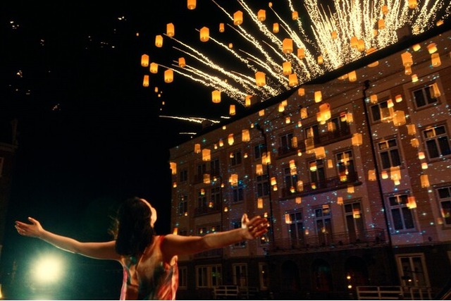 静寂に包まれた街並みと運河を舞台に、高さ18m、幅40mの迎賓館にプロジェクションマッピングが映し出された後、街の住人一人一人にスポットが当てられ、それぞれの願いを言葉や歌に乗せるミュージカル調のストーリーが展開。クライマックスには、辺り一面がプロジェクションマッピングの光と夜空へ舞い上がるランタンの幻想的な灯りに包まれます。そして、会場の興奮が最高潮に達した瞬間、盛大なパイロが夜空へ。開幕からクライマックスまで感動が続く圧巻のエンターテインメントショーをお楽しみください。