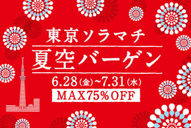 東京ソラマチでは、6/28(金)~7/31(水)の期間、「夏空バーゲン」を開催します。