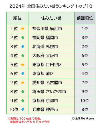 この全国住みたい街ランキング2024トップ100は、2023年4月1日~2024年3月31日の1年間で、生活ガイド.com会員15,223人が住みたい街として選んだ市区町村を集計したものになります。