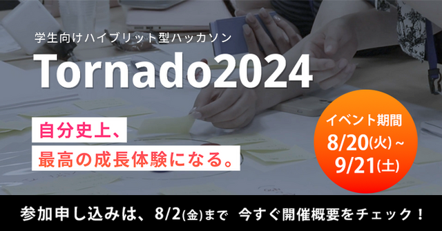学生向けオンラインハッカソン「Tornado(トルネード)」を主催するTornado実行委員会(実行委員長:須田誠/一般社団法人 夢未来・デジタル起業支援ラボ代表)が「Tornado2024」の第1弾スポンサー企業&賞金の詳細を公開いたしました。