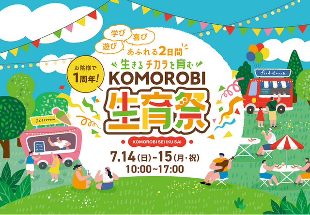 株式会社アサマリゾート(本社:長野県小諸市、代表取締役社長:南波 政洋)が運営する、 長野県小諸市の「KOMOROBI Athletic & Camp (コモロビ アスレチック&キャンプ)」 は、7月15日に開業1周年を迎えます。この記念すべき節目を祝うため、7月14日(日)と15日(月/祝)の2日間にわたって周年イベントである「KOMOROBI生育祭(コモロビセイイクサイ)」の開催を決定しましたのでお知らせいたします。※「生育」は施設コンセプトの「“生”きるチカラを“育”む」より