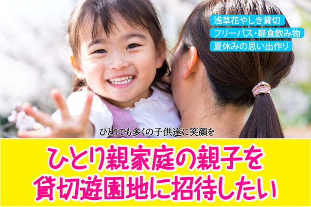 一般社団法人笑顔プラス子供支援協会(所在地:東京都港区、代表:加藤美佐子、以下:一社笑顔プラス子供支援協会)は浅草花やしき遊園地を貸切り、ひとり親家庭の親子をご招待するクラウドファンディングを実施いたします。