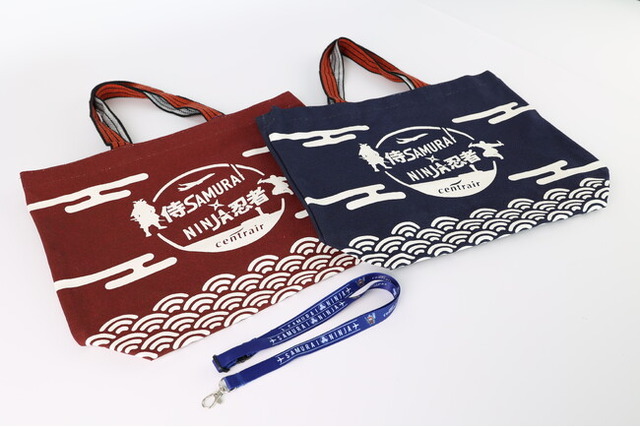1.サムライ忍者トートバッグ 各4,433円(税込)「サムライ×NINJA空港」ロゴがデザインされたトートバッグです。