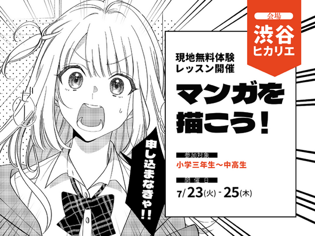 オンラインイラスト教室を運営する株式会社アタム(本社:東京都港区、代表取締役:宮澤惇、以下 アタムアカデミー)は、2024年7月23日(火)から25日(木)まで、渋谷ヒカリエ8Fイベントスペースにて無料体験会「マンガを描こう!」を開催します。体験会につきまして、ご予約の受付を開始いたしましたので、ご案内申し上げます。