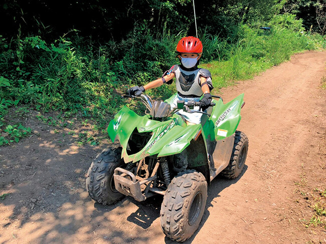バギーの待ち時間の間は、目の前に広がる広大な草原で芝ソリをしたり、大きなバギーが牽引する車両に乗車して森の探険を行ったり、屋内のミニ四駆で遊ぶこともでき、飽きることなく過ごすことができます。